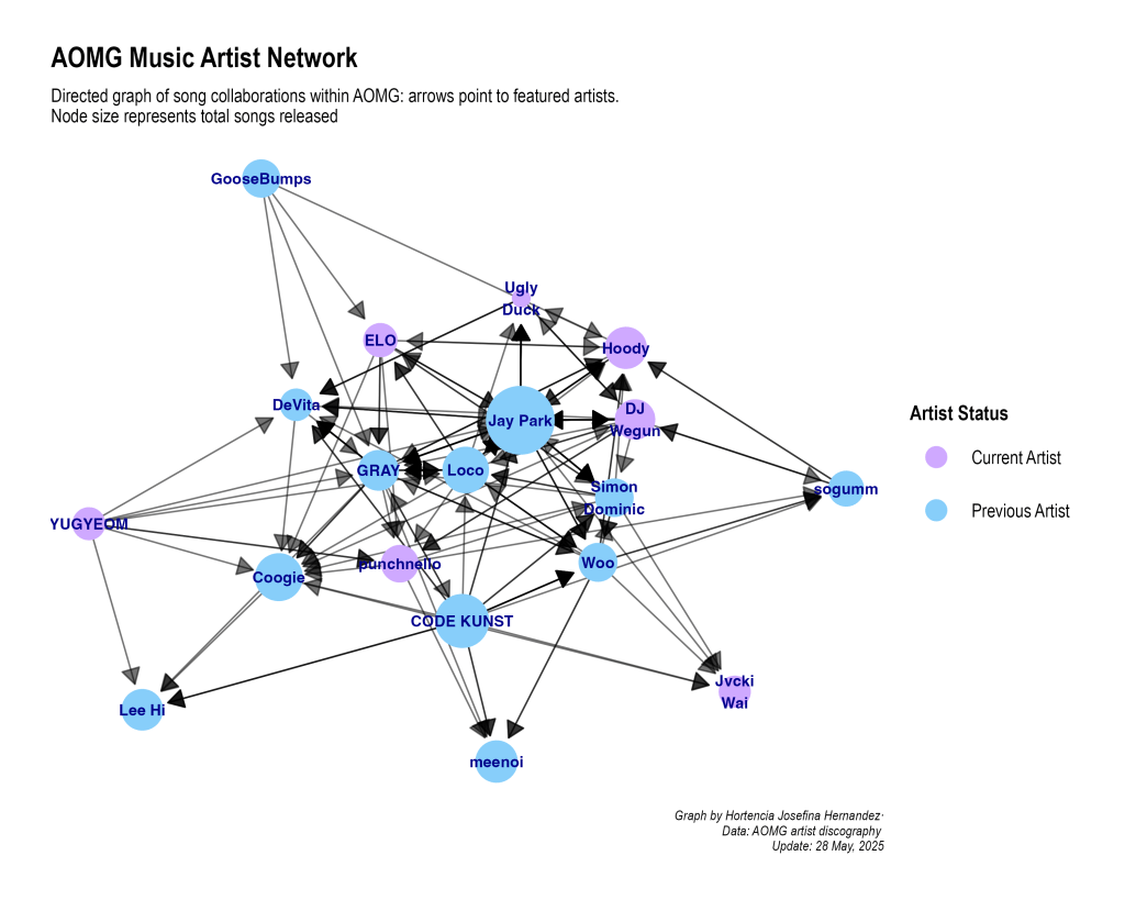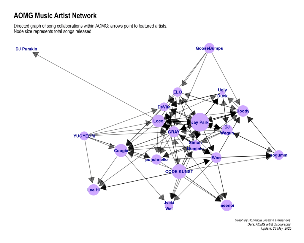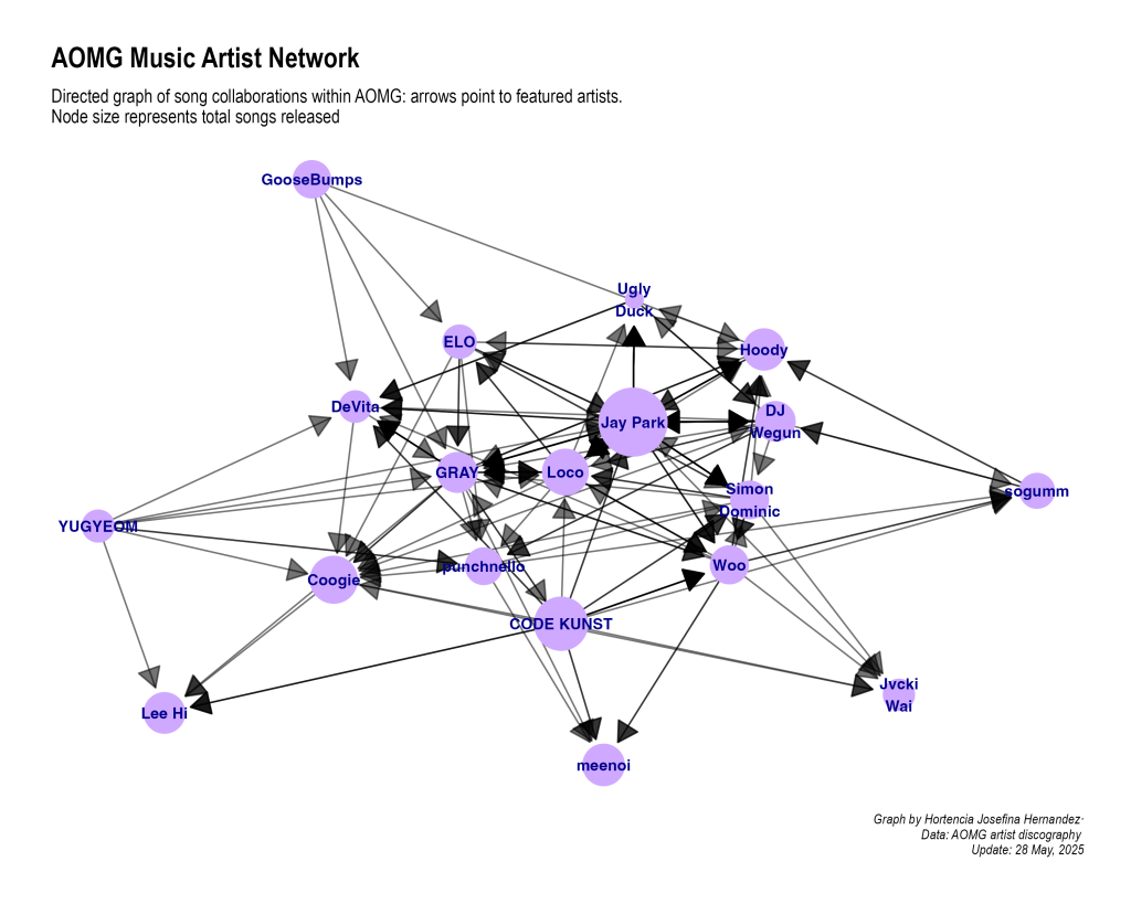 As a reminder, this is only limited to AOMG and their Artists (previous and current) I could show the full network and who they have collaborated with, but that would just be a fun silly thing (because it is a lot lol)